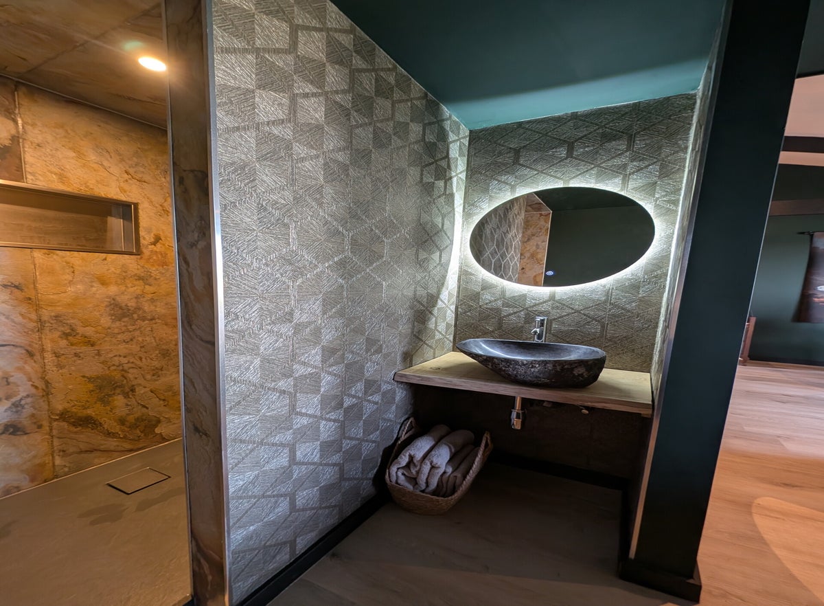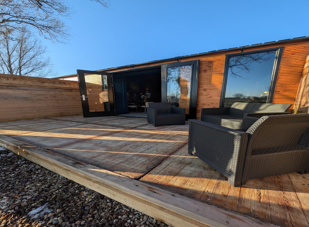 - Een loungehoek met open haard